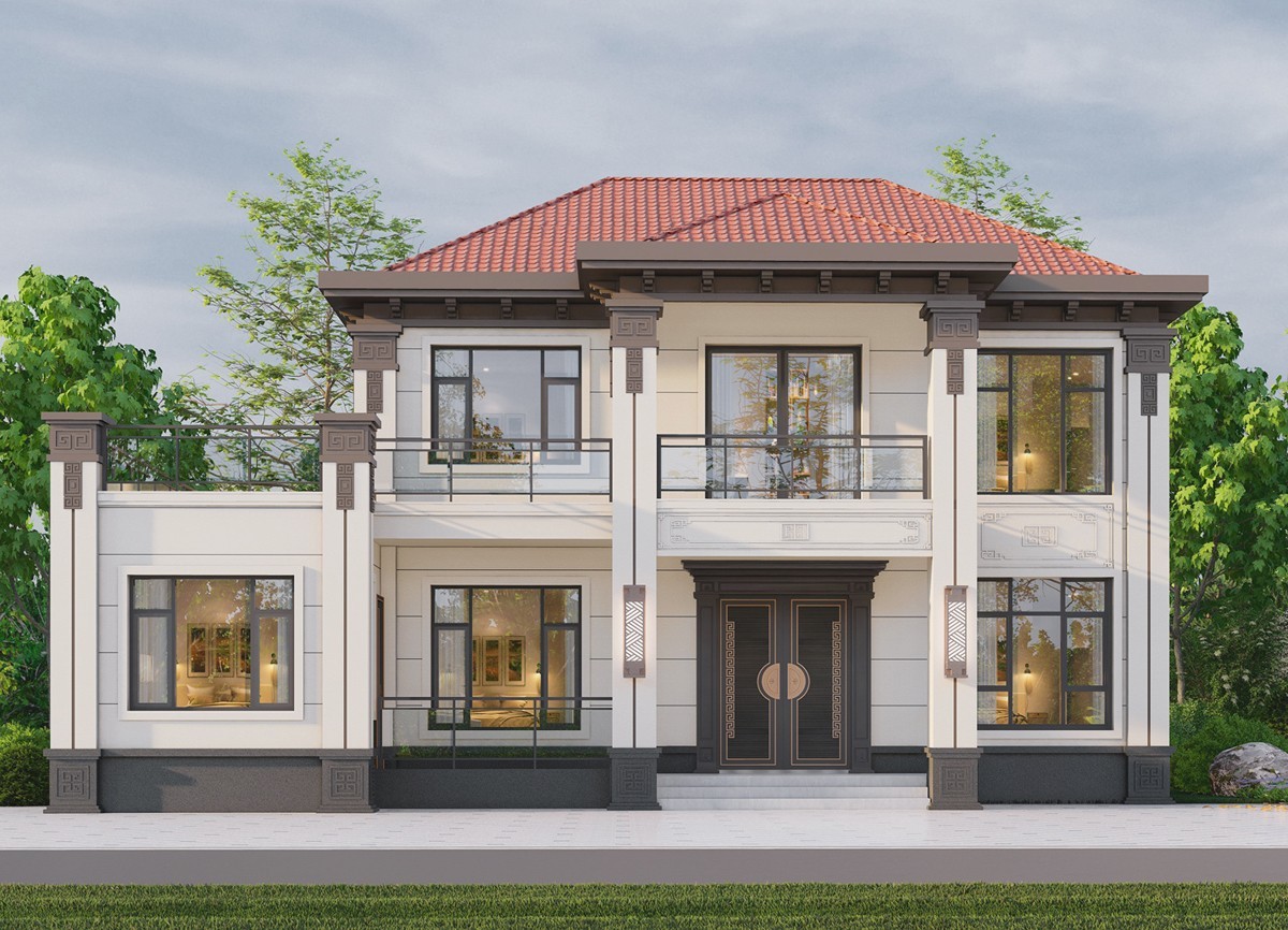 雷波005 两层新中式(11.36x11.76米)-【易设计】